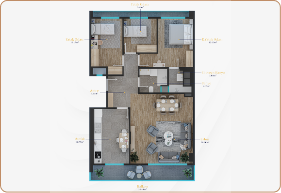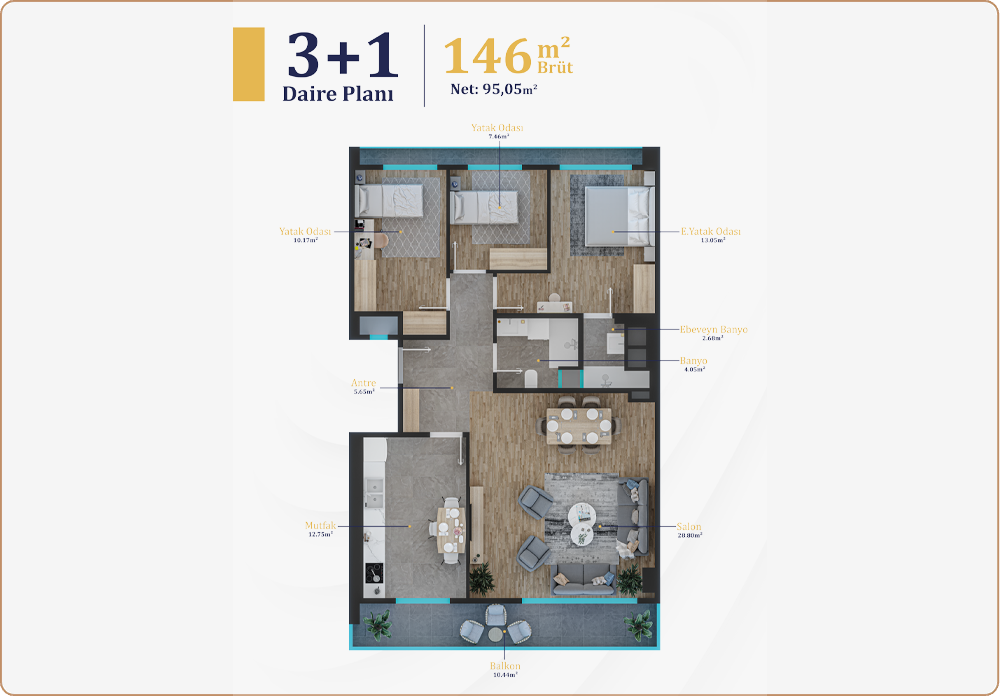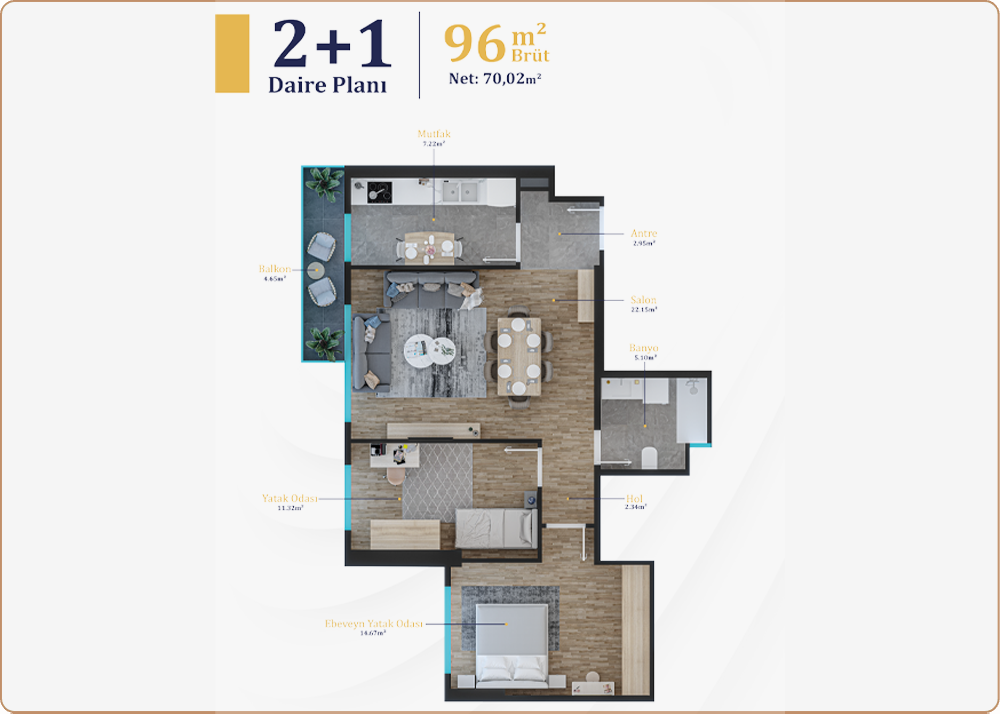 tasarlanmıştır. 2+1, 3+1 ve 4+1 daire tipleri, modern mimariyle birleşerek rahat ve şık yaşam